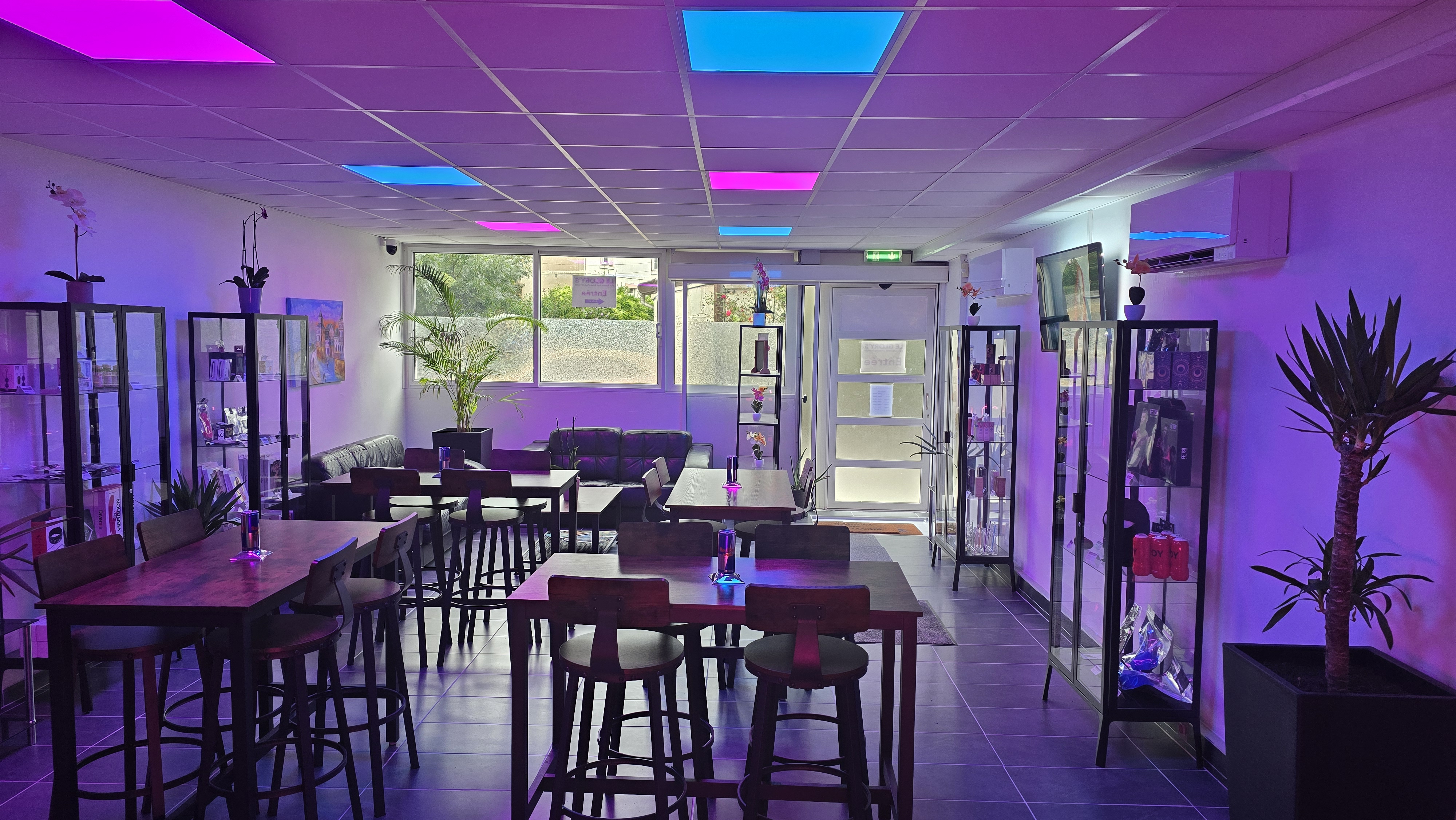 - un bar de 60 m2 avec plus de 23 boissons froides différentes, dont certaines boissons originales bio ou "santé", à l'aloe-vera, par exemple. Nous vous proposons aussi du café et du thé à 2 €.