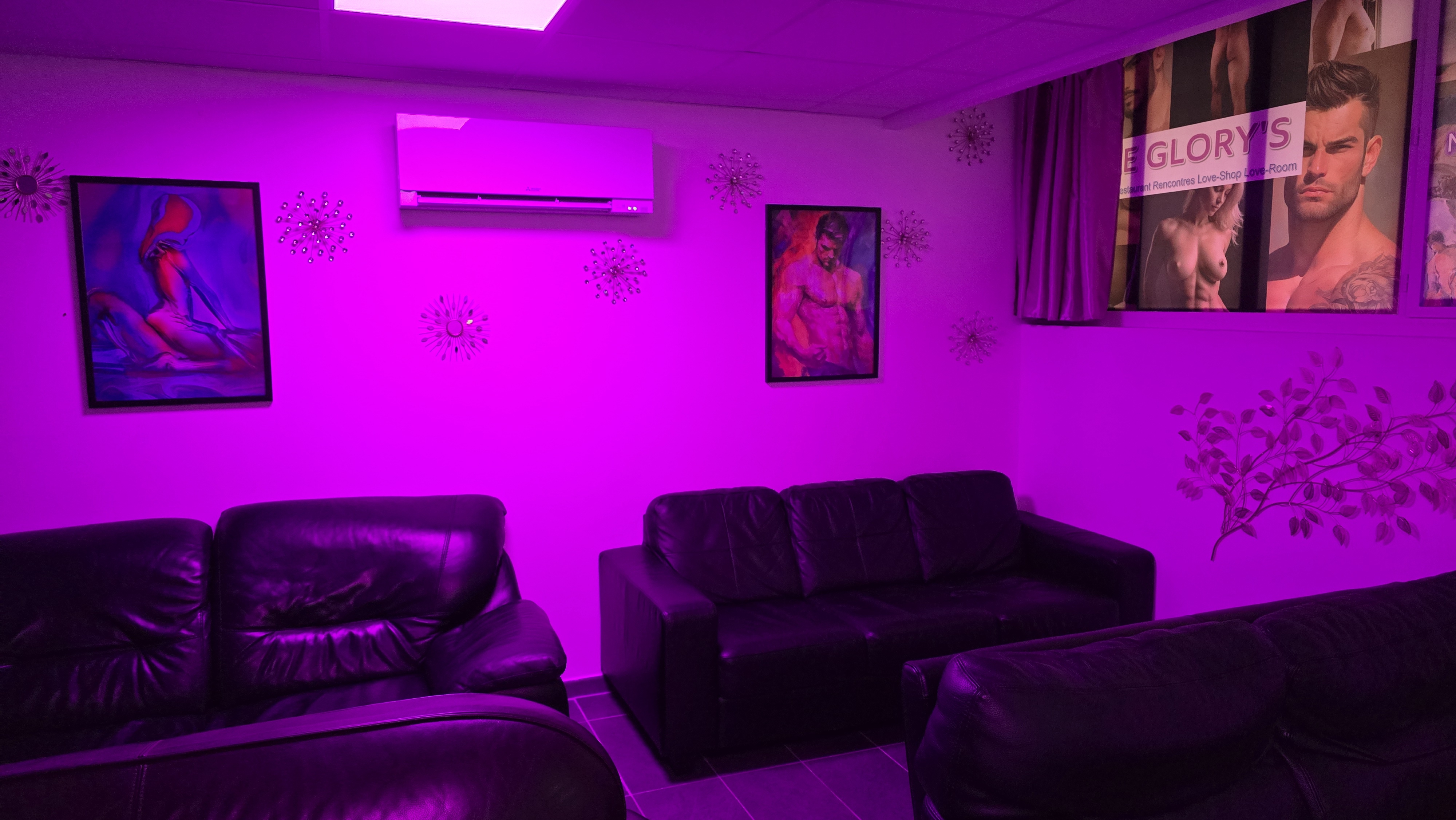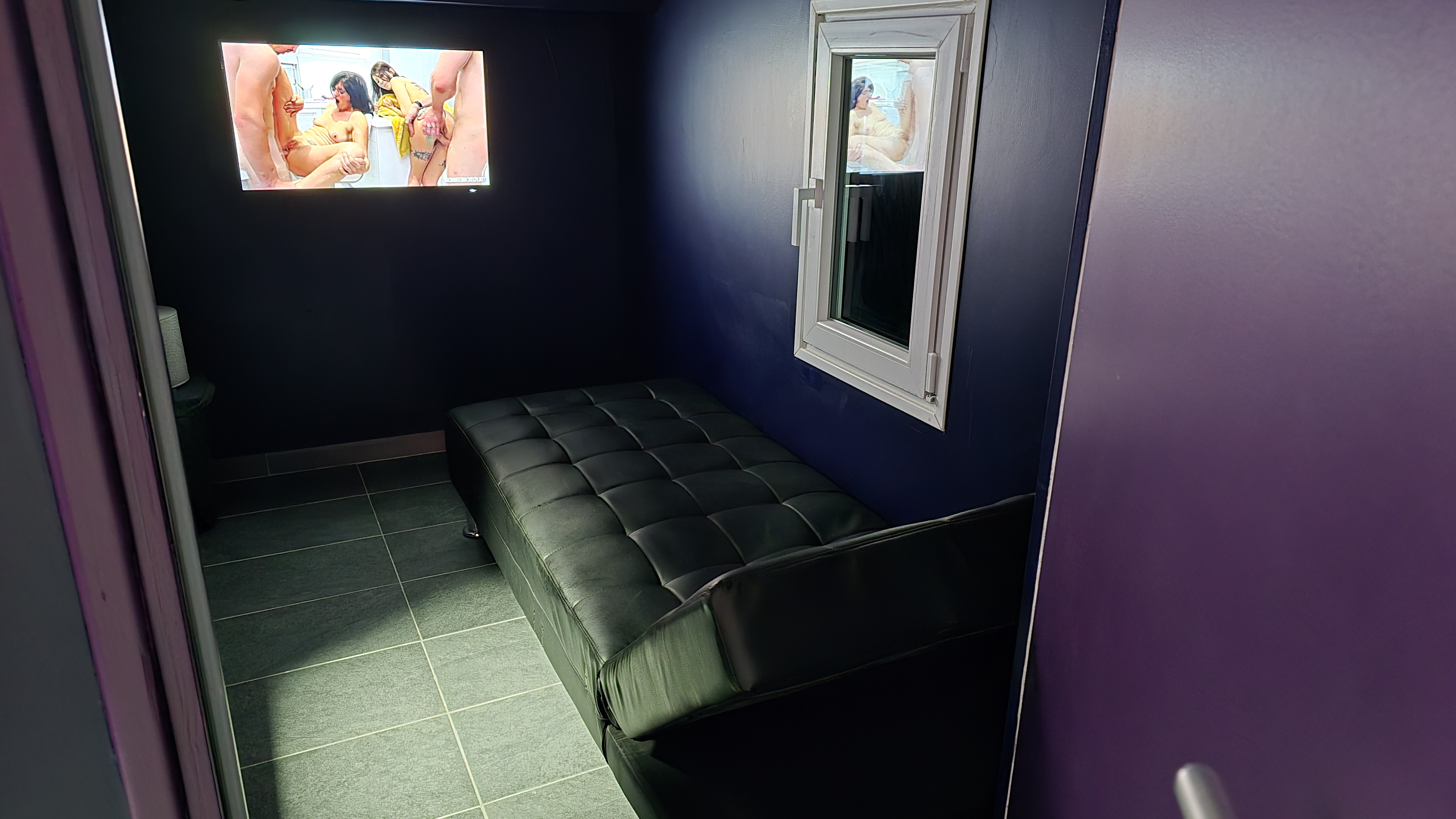 -un espace rencontres de plus de 120 m2, avec salle de vidéo bi de 12 places assises, labyrinthe, cabines gloryholes, cabines vidéos privatives avec chaises et matelas, équipement de musculation, fumoir, chambre...